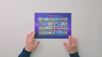 Diese beidseitig bedruckte Häuserschablone unterstützt Sie bei der präzisen Deutung der Großen Tafel im Lenormand. Sie bietet eine klare, visuelle Orientierung für das klassische 9x4 Legesystem und erleichtert die tiefgehende Arbeit mit den Hausplätzen. Das Design mit dem tiefen, kosmischen Hintergrund sorgt für eine ruhige und fokussierte Atmosphäre während Ihrer Legungen.