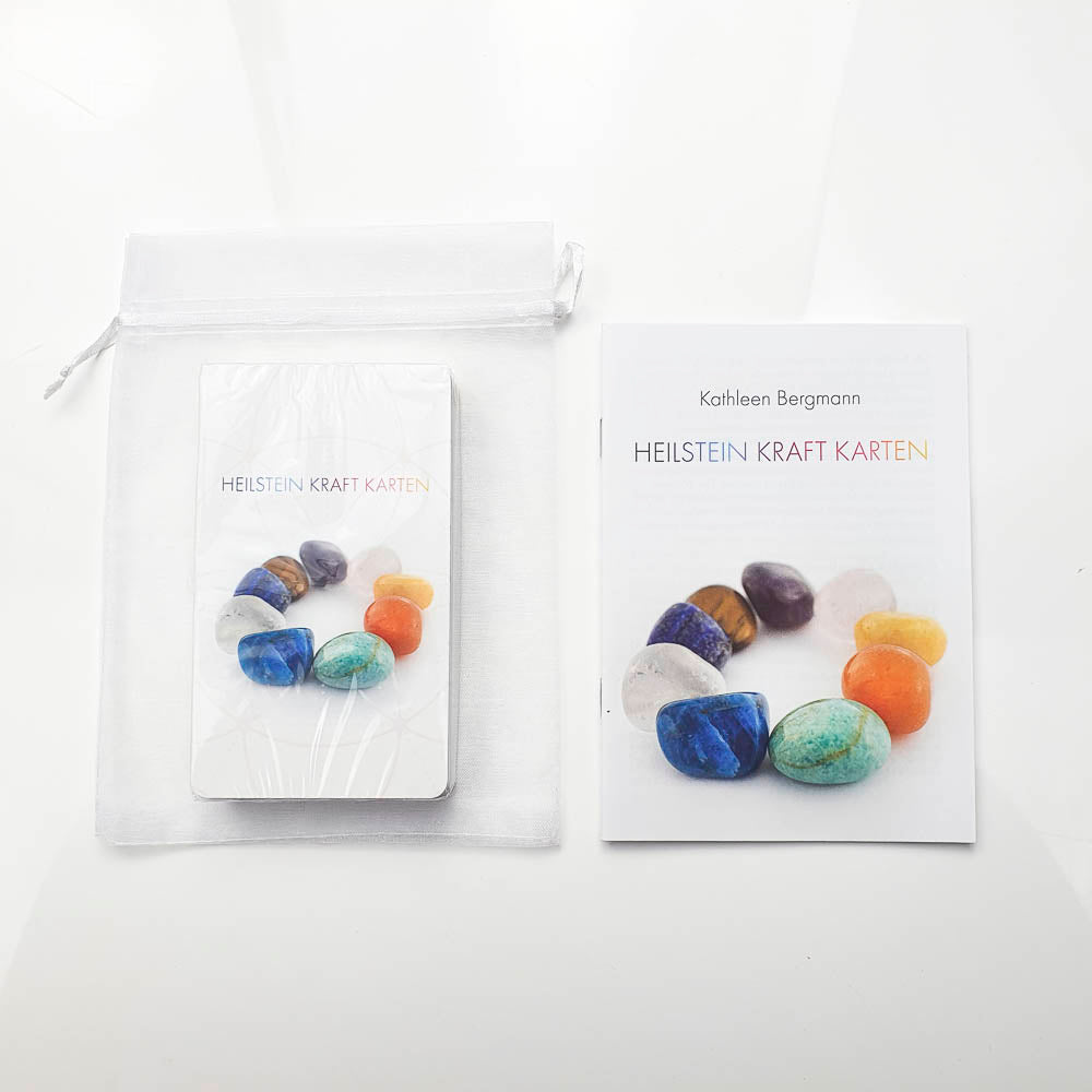 The set can accompany any form of spiritual or therapeutic work. No previous knowledge is required. On the cards and in the accompanying booklet you will receive comprehensive information on 36 pages about how the respective gemstone is optimally charged, how best to use it and which other stones it harmonizes with.